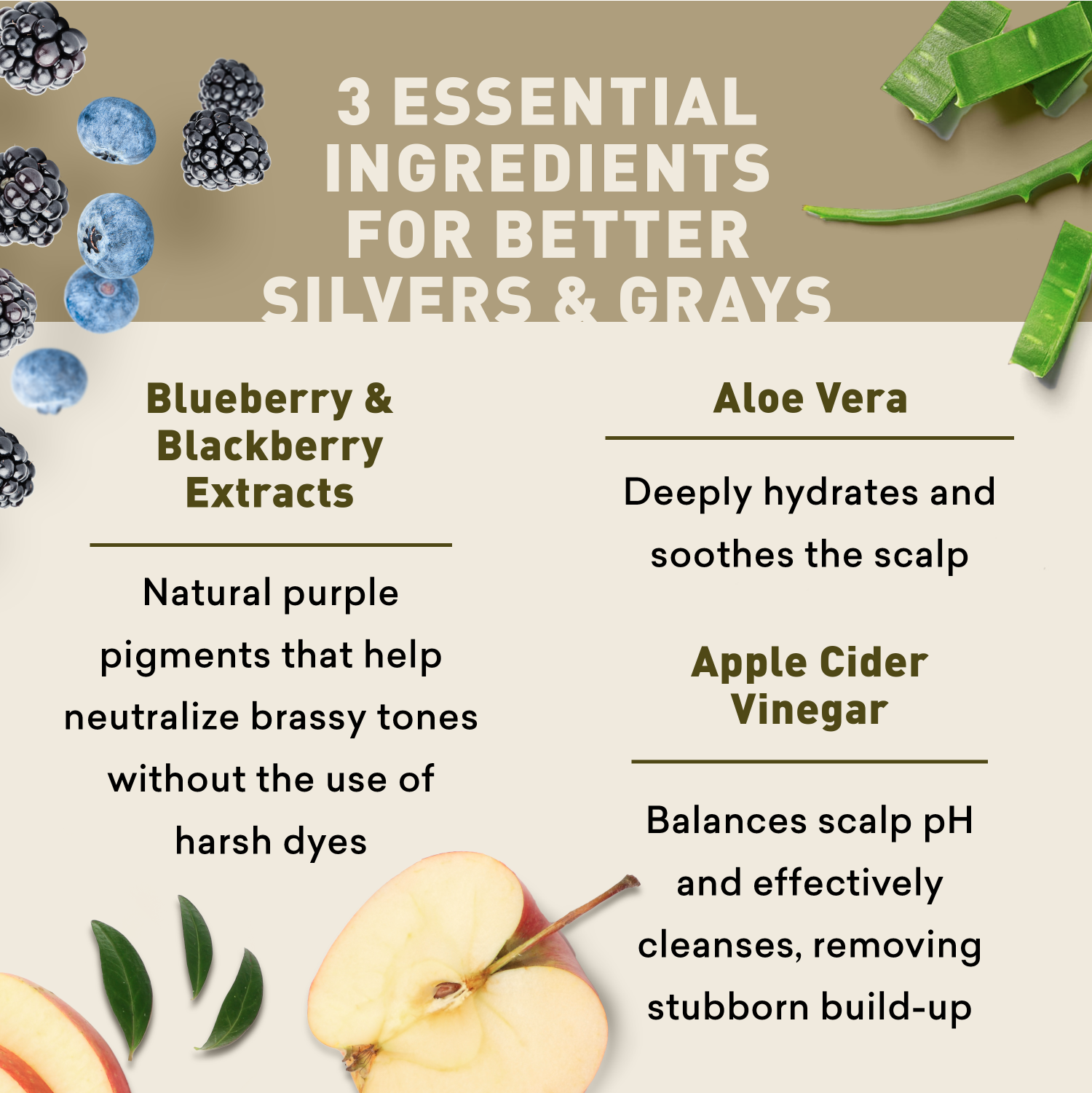 This powerful trio—Purple Toning Shampoo, Gray Hair Shampoo, and Vinegar Rinse Cleanser—works as a comprehensive system to keep your gray, silver, or white hair looking vibrant, cool-toned, and refreshed.